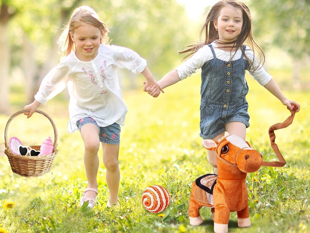 Entdecken Sie einen fröhlichen Begleiter für jeden Tag. Dieses interaktive Plüsch-Pony wird durch Bewegung und Sounds lebendig: es läuft, wiehert und zeigt einen Tanz zur Country-Musik. Dank der angenehmen Plüschoberfläche ist es ideal zum Kuscheln, während die einfache Ein-Knopf-Bedienung auch jüngere Kinder erfreut.