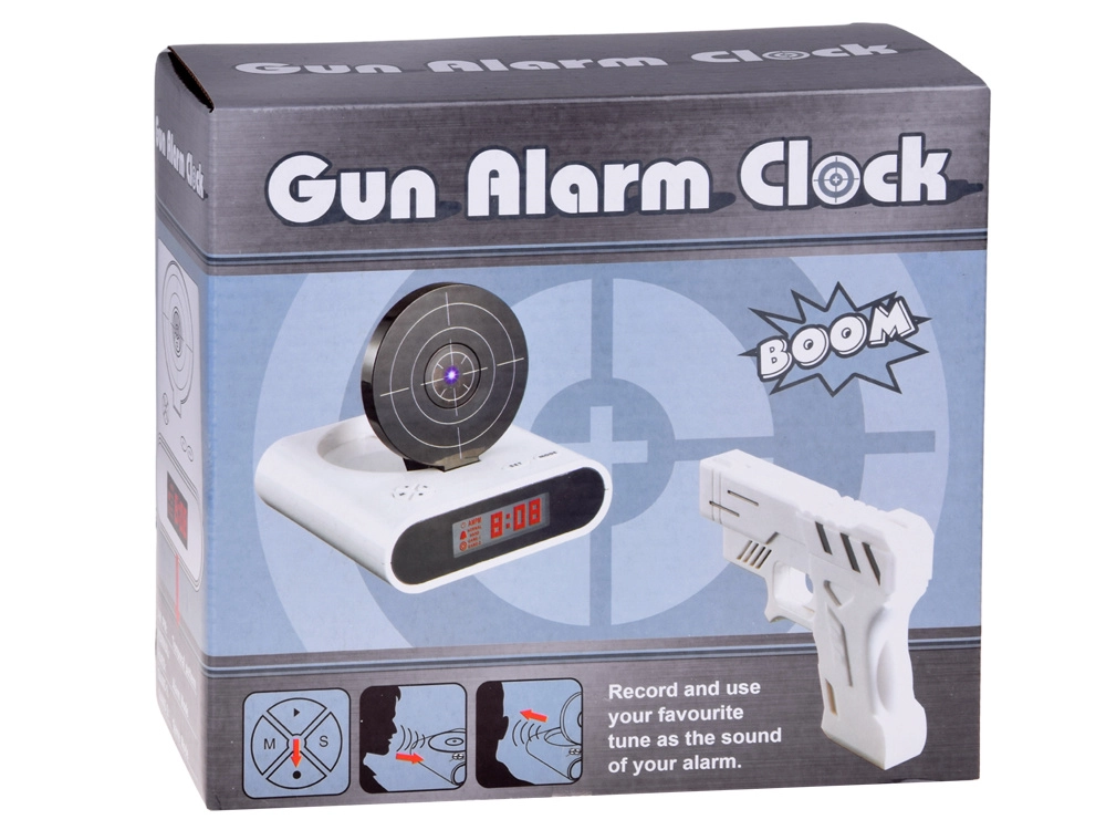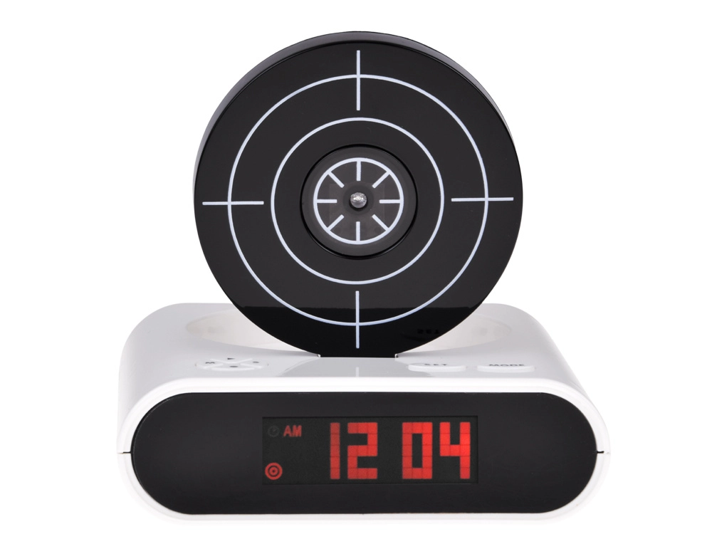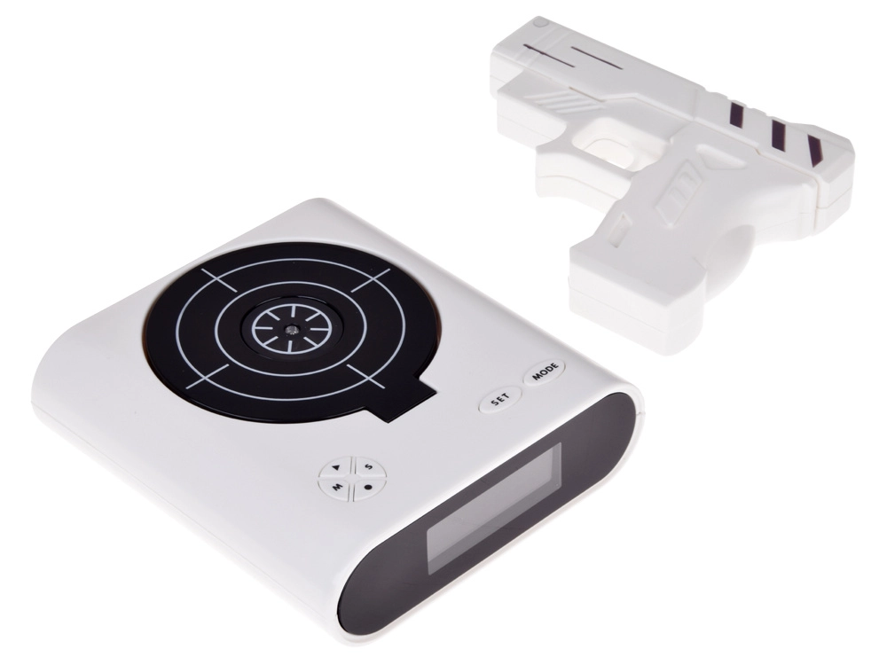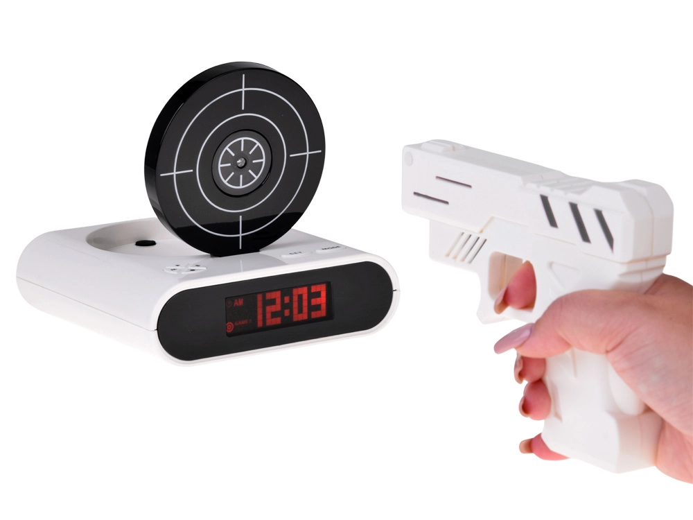 Der Morgen wird nicht mehr langweilig. Sobald der Alarm losgeht, einfach mit der Pistole auf die Zielscheibe zielen und ins Zentrum treffen – der Wecker verstummt erst nach einem Treffer. Sie können Ihren eigenen Weckton aufnehmen (von Meeresrauschen bis zu Ihrem Lieblingstechnotrack) oder den Standardalarm verwenden. Für Spaß und Zielübungen stehen 2 Spielmodi zur Verfügung.