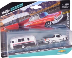 Dieses lizenzierte Set begeistert jeden Fan amerikanischer Klassiker. Das Modell CHEVROLET 454 SS Pick-up (1993) in elegantem Weiß ist mit einem Wohnwagen gekoppelt, der den realistischen Look und die Spielmöglichkeiten zusätzlich unterstreicht. Metallteile und sorgfältige Verarbeitung betonen den Sammlerwert.