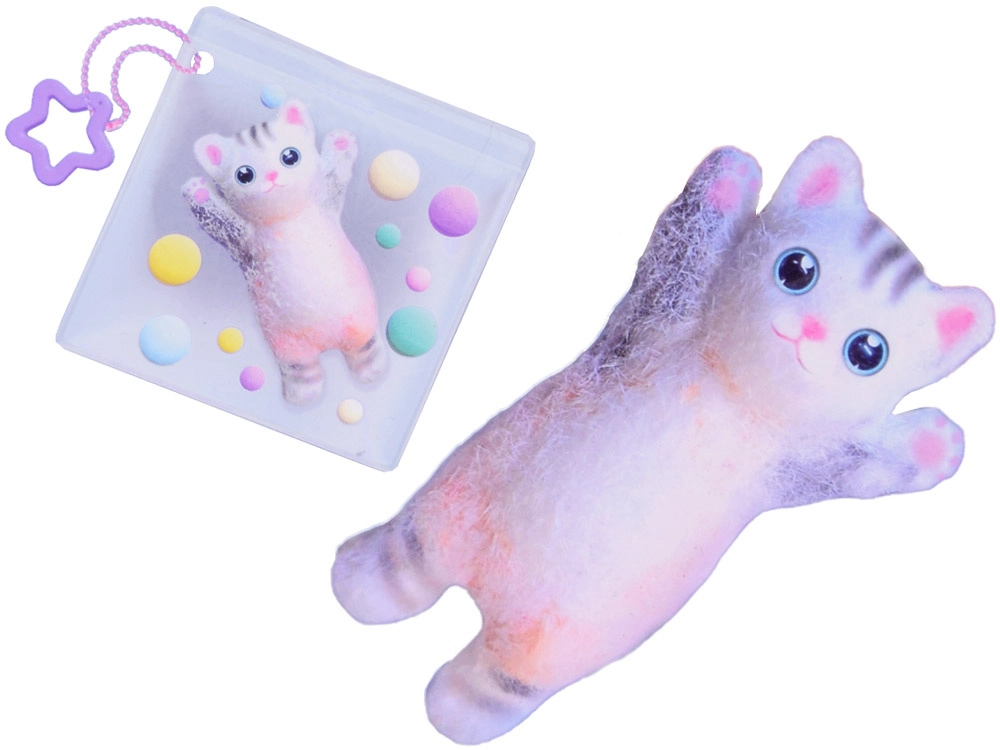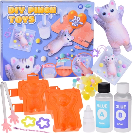 Entdecken Sie ein unterhaltsames DIY-Set, mit dem Kinder selbst einen niedlichen Katzenanhänger gestalten. Sie mischen die Masse, färben sie ein, dekorieren sie mit Pompons, Sternchen und weichem „Federflaum“ und legen die fertige Katze in den Zierbeutel mit Kette. Das Ergebnis ist ein antistress, weiches und flauschiges Glücksbringerchen, das sie überallhin mitnehmen können.