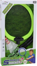 Entdecken Sie den Spaß mit Familie und Freunden mit diesem praktischen Badminton-Set. Die Konstruktion aus hochwertigem Kunststoff sorgt für Haltbarkeit und stabile Schlagkontrolle, während der Schaumstoffgriff in Grün, Weiß und Schwarz einen sicheren und bequemen Halt bietet. Der grüne Kopfumlauf des Schlägers erhöht die Sichtbarkeit während des Spiels, und die weiche schwarze Trefferfläche hilft, den Verschleiß der Federbälle zu minimieren.