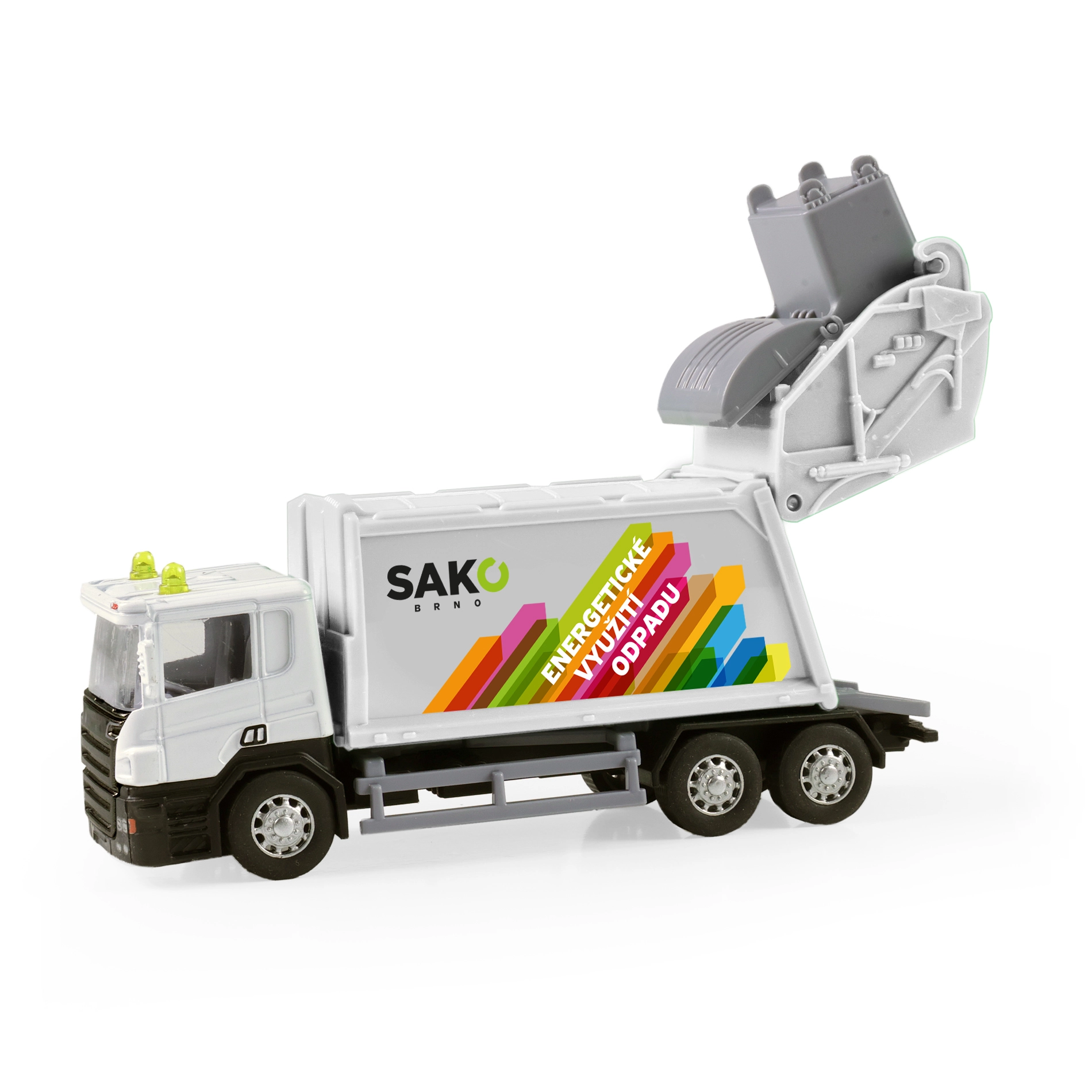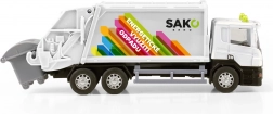 Erleben Sie jede Menge Spaß mit dem detailreichen Müllwagen mit SAKO-Logo. Das Metallchassis verleiht dem Modell Stabilität, während die Kunststoffmulde mit aufklappbarer Heckklappe realistisches Beladen und Entleeren ermöglicht. Eine öffnende Mülltonne ist ebenfalls enthalten, damit Kinder den echten Ablauf der Abfallabholung nachspielen können.