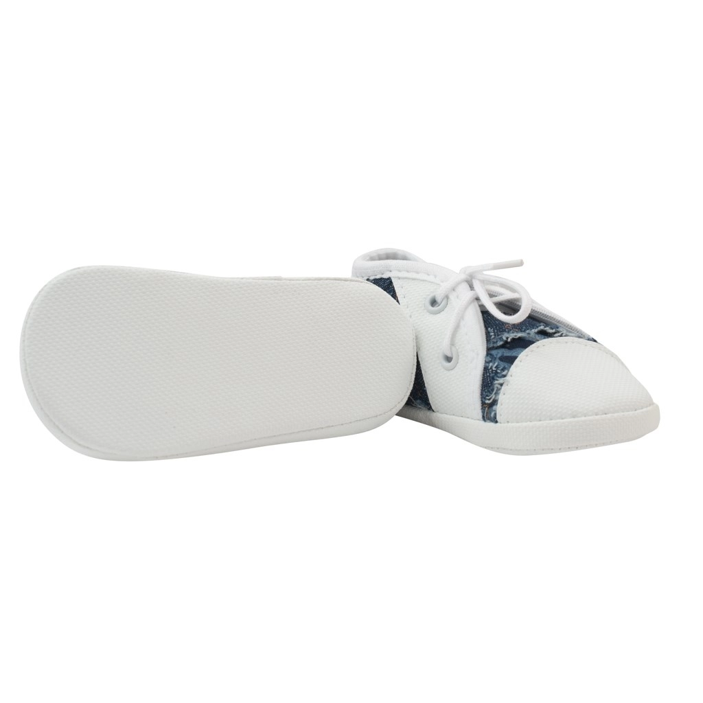 Niedliche Krabbelschuhe im modernen Sneaker-Stil mit klassischer Schnürung sitzen hervorragend am Füßchen und ergänzen jedes Outfit. Dank des breiteren Innenraums bieten sie dem Baby Freiheit für die natürliche Entwicklung von Zehen und Muskeln. Sie sind sehr leicht, bequem und sowohl für Jungen als auch Mädchen geeignet.