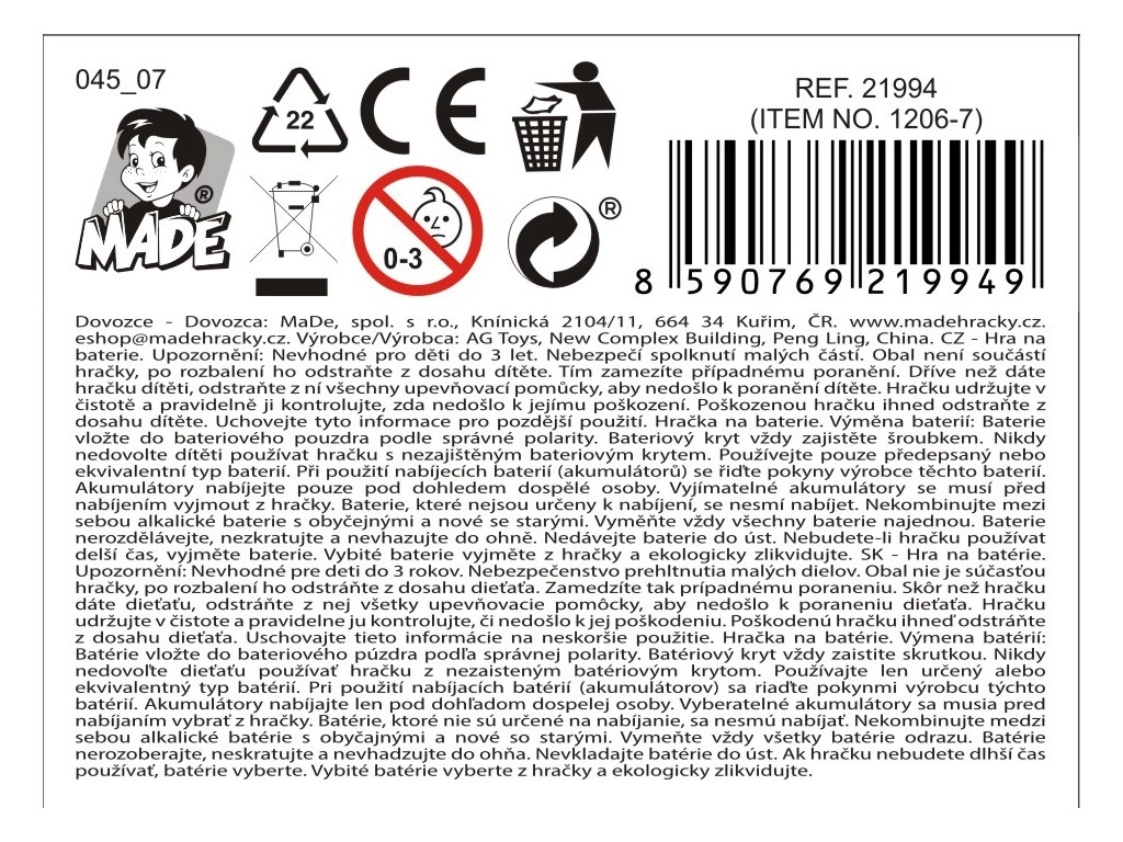 Der Lieferumfang umfasst ein Kunststoffspiel in einer praktischen Box. Für den Betrieb werden 3 AAA-Batterien benötigt (nicht im Lieferumfang enthalten).