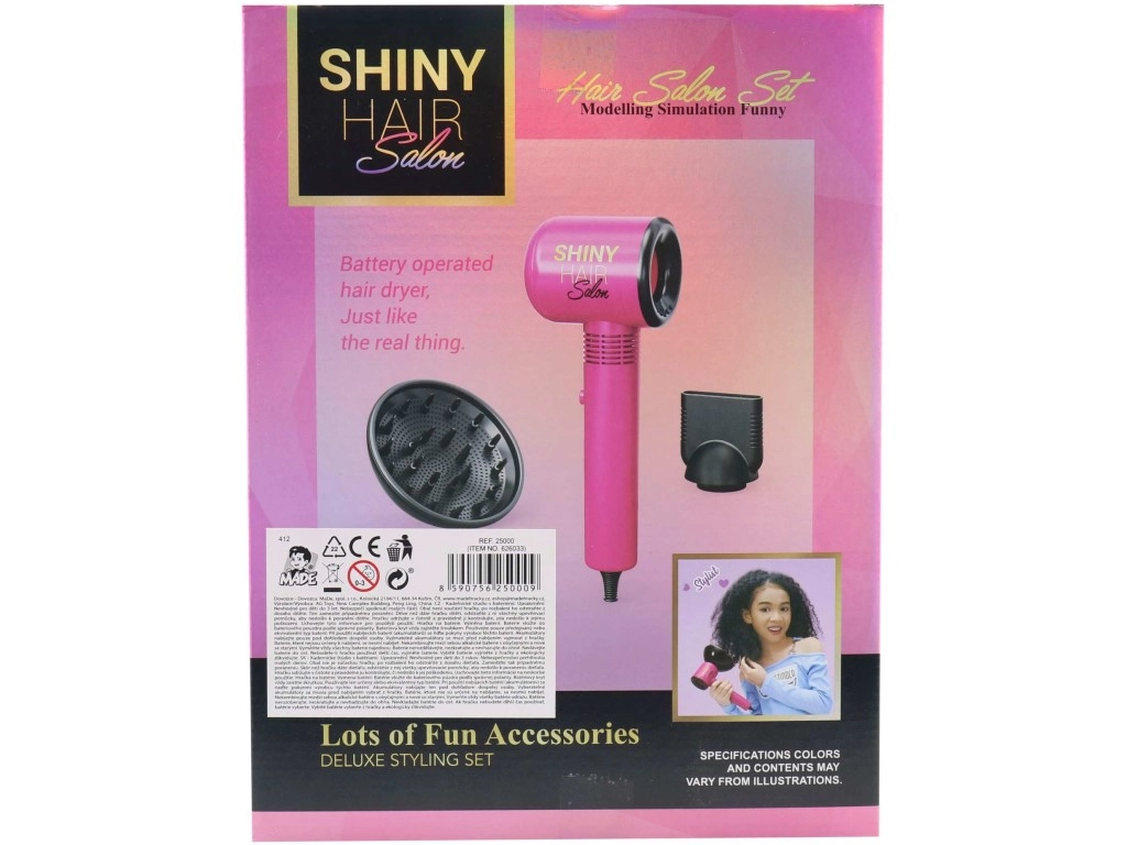 Verwandeln Sie das Kinderzimmer in einen kleinen Friseursalon! Der Kinderföhn aus dem Haarstudio fördert Kreativität, Rollenspiele und die Feinmotorik. Dank der leichten Konstruktion und der angepassten Größe ist er ideal für kleine Hände und sicheres Spielen zu Hause.