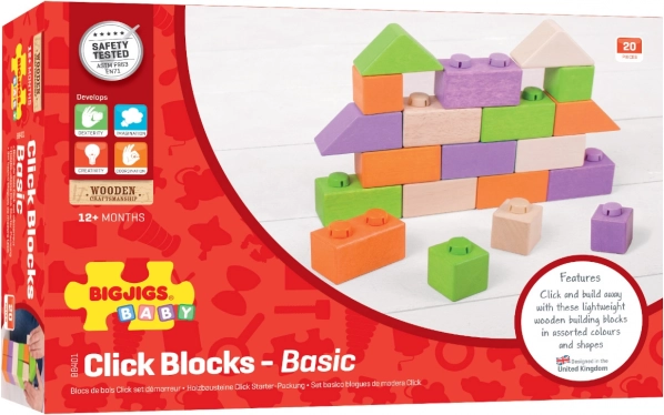 Wir präsentieren das Bigjigs Baby Holzverbindungsklötze Bausatz, das unbegrenzte Möglichkeiten zur Schaffung und zum Ausdruck von Kreativität bietet. Dieses mittlere Set enthält 20 Teile mit Holzklötzen in verschiedenen Formen und Farben. Verbindungsklötze sind ideal für Kinder ab einem Jahr.