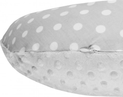 Praktisches Stillkissen NEW BABY in Grau sorgt für ein bequemes Liegen des Babys und Entlastung für den Rücken der Mutter. Es kombiniert weichen Minky-Stoff für sensorische Stimulation mit 100% Baumwolle mit originellen Motiven. Der abnehmbare Bezug erleichtert die Pflege, die antiallergische Füllung ist sicher und sanft zur empfindlichen Babyhaut.