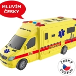 Dieses detailreich gestaltete Rettungsfahrzeug im tschechischen Design des Rettungsdienstes bringt Kindern jede Menge Action und Spielspaß. Auf Knopfdruck ertönen realistische Ansagen der Leitstelle und der Besatzung, ergänzt durch funktionierendes Blaulicht und Soundeffekte. Dank des Schwunglauf-Antriebs fährt das Auto leicht über den Boden, ohne ständig geschoben werden zu müssen.