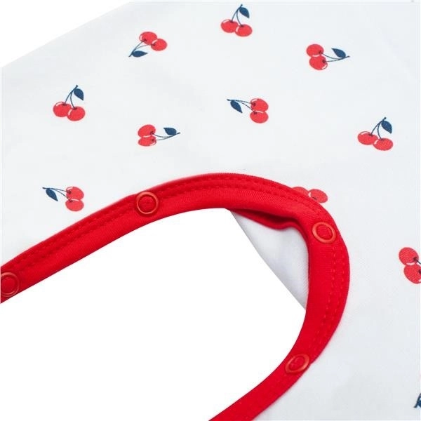 Das praktische Knöpfen mit Druckknöpfen an den Trägern und im Schritt erleichtert Anziehen und Wickeln. Dank des atmungsaktiven und weichen Materials eignen sich die Strampler für den ganztägigen Einsatz – besonders an wärmeren Tagen als Teil der Sommerkollektion Cherry.