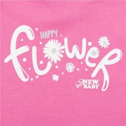 Dieses praktische und stylische Set New Baby Happy Flower ist ideal für den Alltag und gemütliche Stunden zu Hause. Das T‑Shirt ist mit dem dezenten Schriftzug Happy Flower verziert, und die Rüschenärmel sorgen für einen verspielten, mädchenhaften Look. Der bequeme Druckknopfverschluss am Halsausschnitt auf der Rückseite erleichtert das An- und Ausziehen.