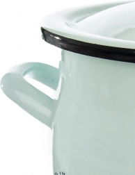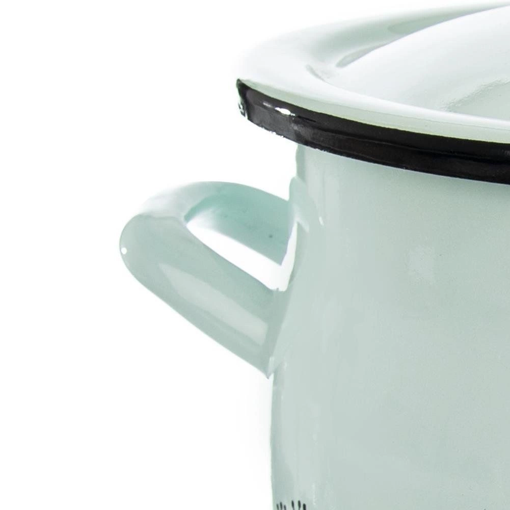Eleganter Topf im Retro-Stil mit Blumenmotiv aus widerstandsfähigem emailliertem Stahl in Hellgrün. Dank der praktischen Griffe und des gut sitzenden Deckels ist die Handhabung maximal komfortabel. Perfekt geeignet zum Kochen von Suppen, Saucen und zum Schmoren und dank des attraktiven Designs auch zum Servieren am Tisch.