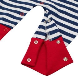 Dank der Druckknöpfe an der Schulter und im Schritt sind Anziehen und Wickeln schnell und unkompliziert. Der Strampler ist ein praktisches Kleidungsstück für Babys – selbst bei aktiver Bewegung bleibt das Rückenpartie stets bedeckt, was Komfort und Wärmegefühl erhöht.