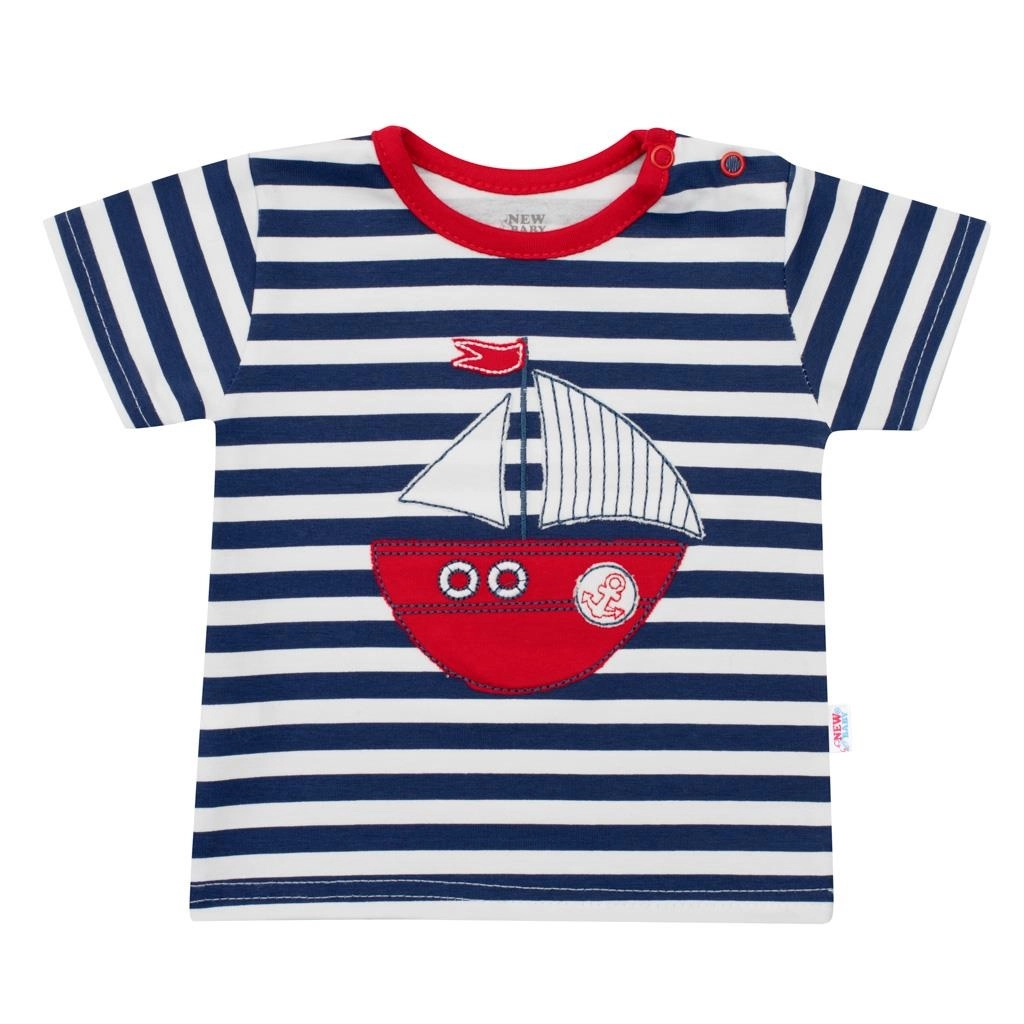 Dieses 2-teilige Set NEW BABY Marine ist ideal für warme Tage. Das gestreifte T-Shirt mit kontrastierendem Einfassband und niedlichem Boot-Aufnäher ist unterlegt, um die empfindliche Kinderhaut nicht zu reizen. Der praktische Schulterverschluss erleichtert An- und Ausziehen.