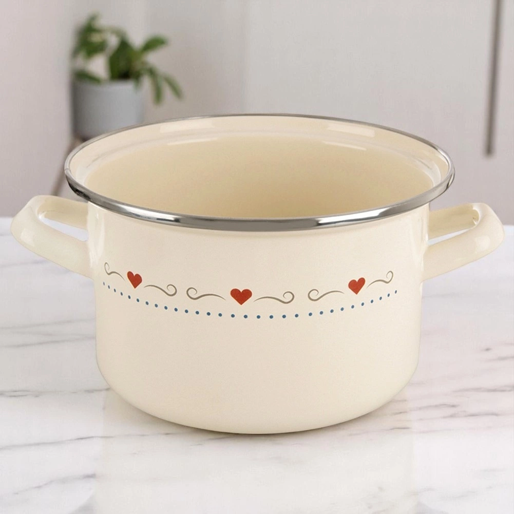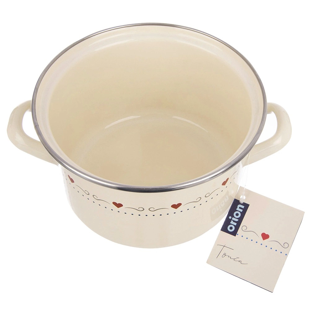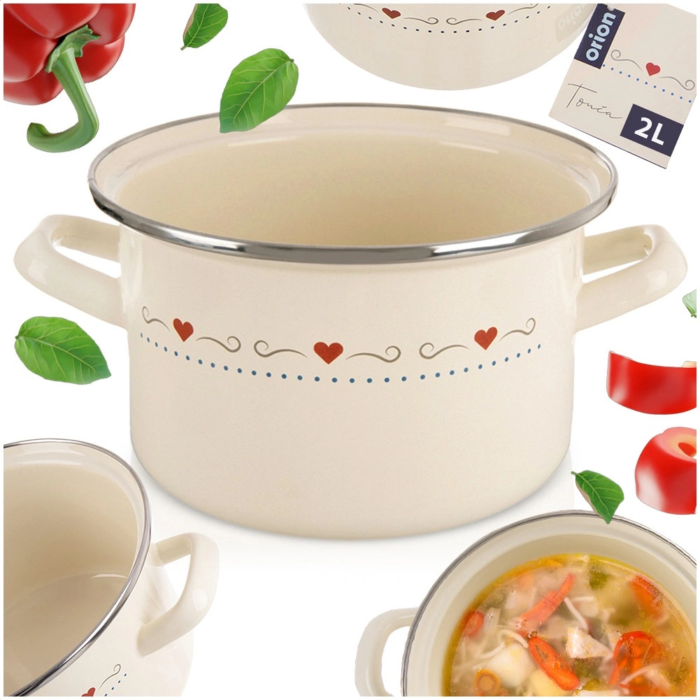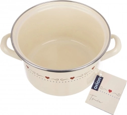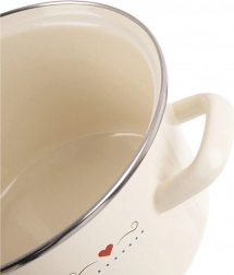 Entdecken Sie einen praktischen Helfer für das tägliche Kochen. Der Emaille-Topf TONCA im Retro-Stil ist ideal zum Kochen und Schmoren von Suppen, Saucen und Hauptgerichten. Das schöne cremefarbene Design mit Herzchen schmückt Ihre Küche und die festen Griffe sorgen für eine sichere Handhabung.