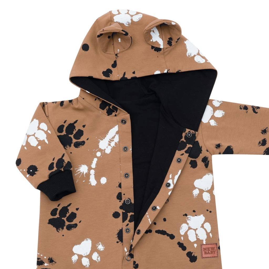 Stilvoller und funktionaler Overall für Babys von NEW BABY in Senfgelb mit Pfotenmotiv – kombiniert weiches Material und durchdachte Details für täglichen Komfort. Glatte Baumwolle mit Elastan passt sich angenehm an und das weiche Baumwollfutter hält warm, ohne zu überhitzen.