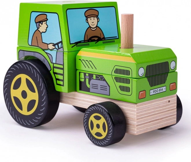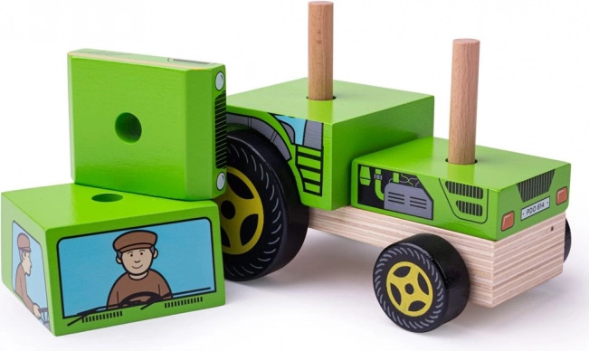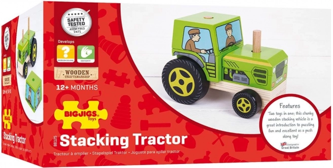 Dieser Holztraktor von BIGJIGS verbindet ein Steckpuzzle mit einem Spielfahrzeug. Bevor es aufs „Feld“ geht, müssen Kinder die Teile korrekt aufstecken und zusammensetzen – so fördern sie spielerisch Logik und Geduld. Dank der beweglichen Räder ist er anschließend bereit für Fahrten durchs Kinderzimmer.