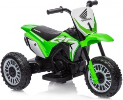 Das lizenzierte Kindermotorrad BABY MIX HONDA CRF 450R grün verbindet das realistische Erscheinungsbild des beliebten Modells mit sicherem Betrieb für Kinder ab 24 Monaten. Die einfache Pedalsteuerung, stabile breite Räder mit Geländeprofil und der bequeme Sitz machen die Fahrt zum Spaß und fördern gleichzeitig die Motorik.