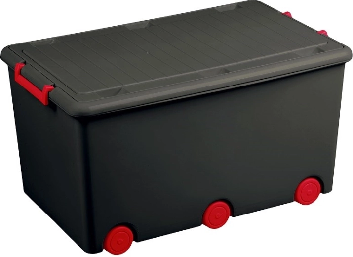 Der praktische seitliche Verschluss mit 2 Druckknöpfen hält den Inhalt sicher an Ort und Stelle und die Stapelbarkeit ermöglicht eine optimale Raumnutzung. Mit einem Volumen von 60 Litern fasst er Spielzeug, Baukästen, Plüschtiere, Bücher und Schulbedarf.