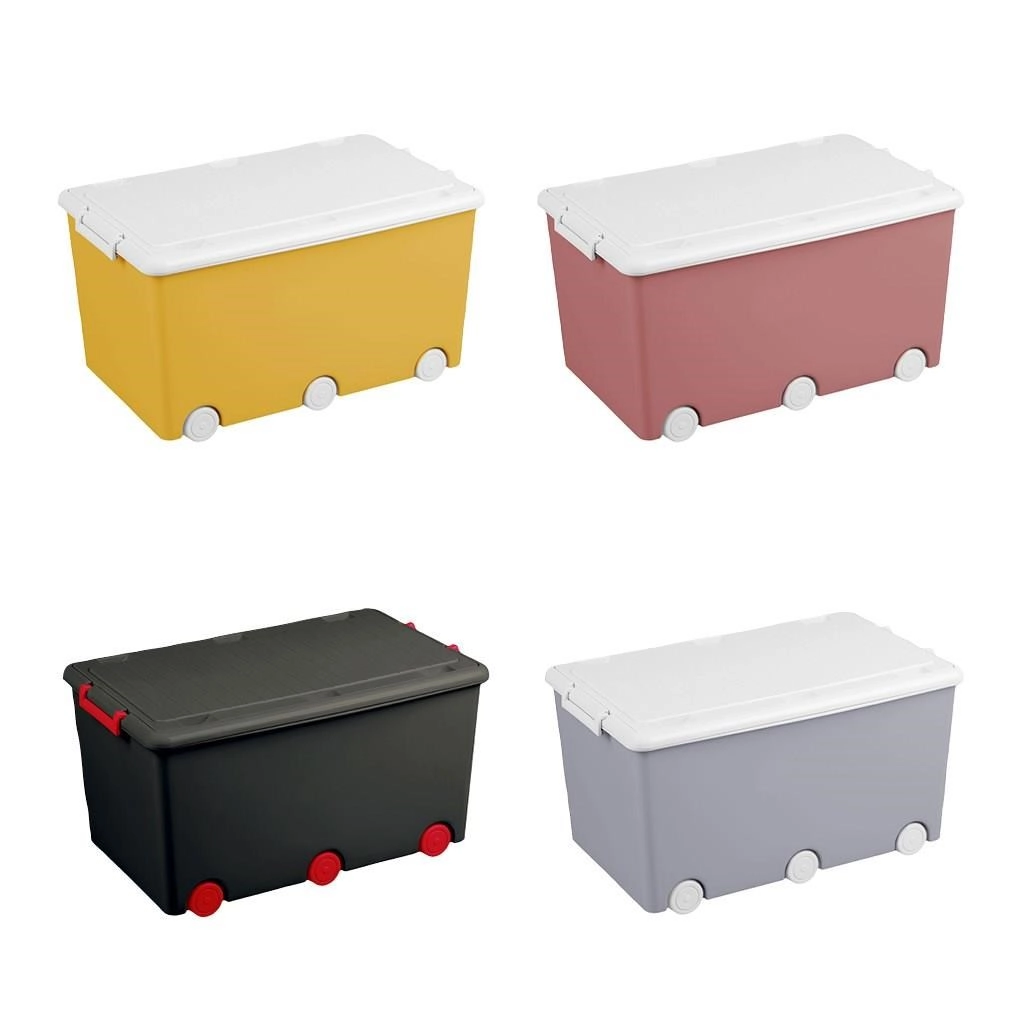 Dieser große Spielzeugbehälter von TEGA ist die ideale Wahl für schnelles Aufräumen und die Organisation des Kinderzimmers. Die robuste Kunststoffkonstruktion ist langlebig, leicht und dank der 6 Rollen lässt sich die Box auch voll beladen mühelos verschieben. Das neutrale Grau passt in jedes Interieur.
