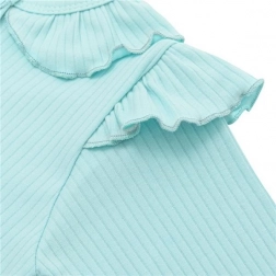 Der stilvolle Streifen-Look in Eisblau lässt sich leicht mit weiterer Erstausstattung kombinieren. Der Overall hält den Rücken des Babys stets bedeckt – ob es krabbelt oder ruht – und bietet so Komfort und Wärme ohne unnötiges Schichten.