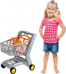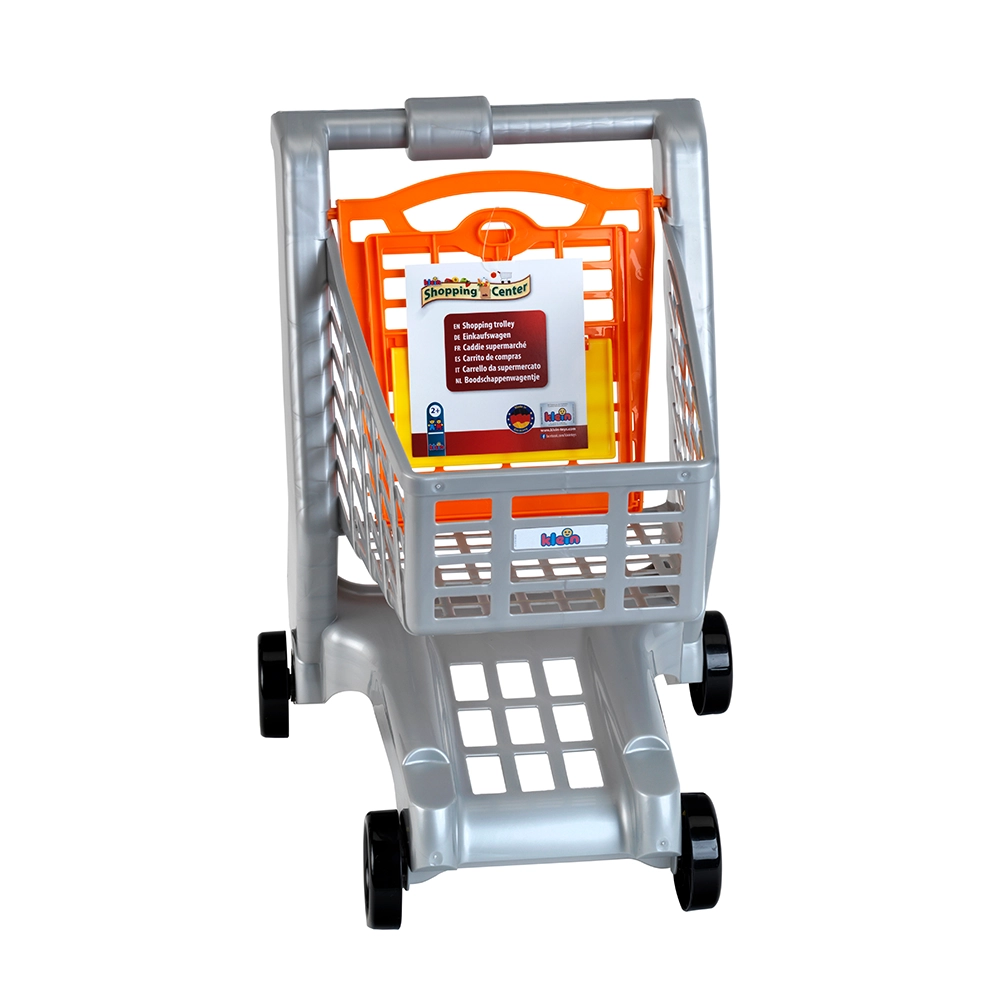 Offener Korb, Griff und vier Räder imitieren einen echten Supermarktwagen – Kinder genießen ein authentisches Einkaufserlebnis.
