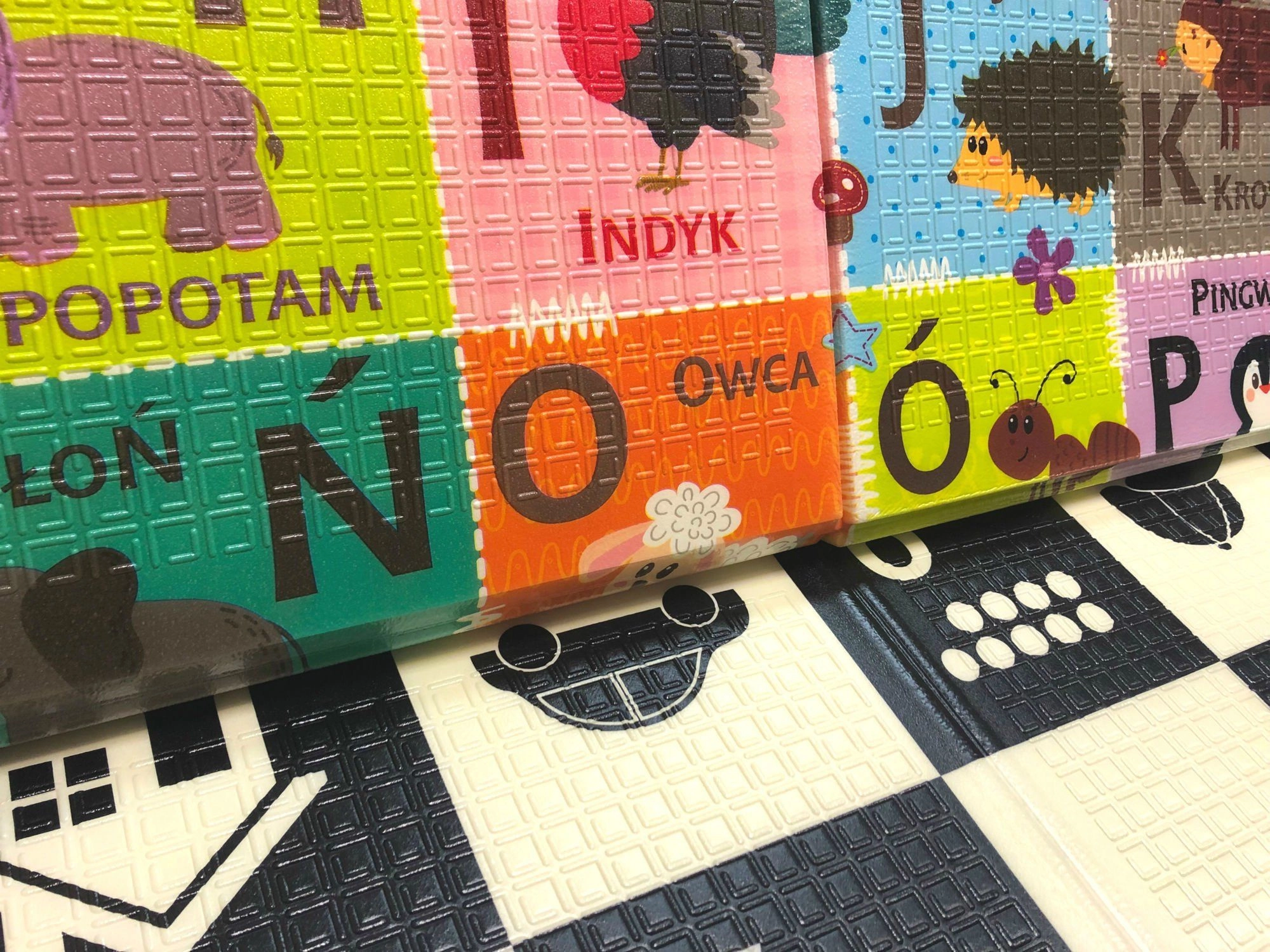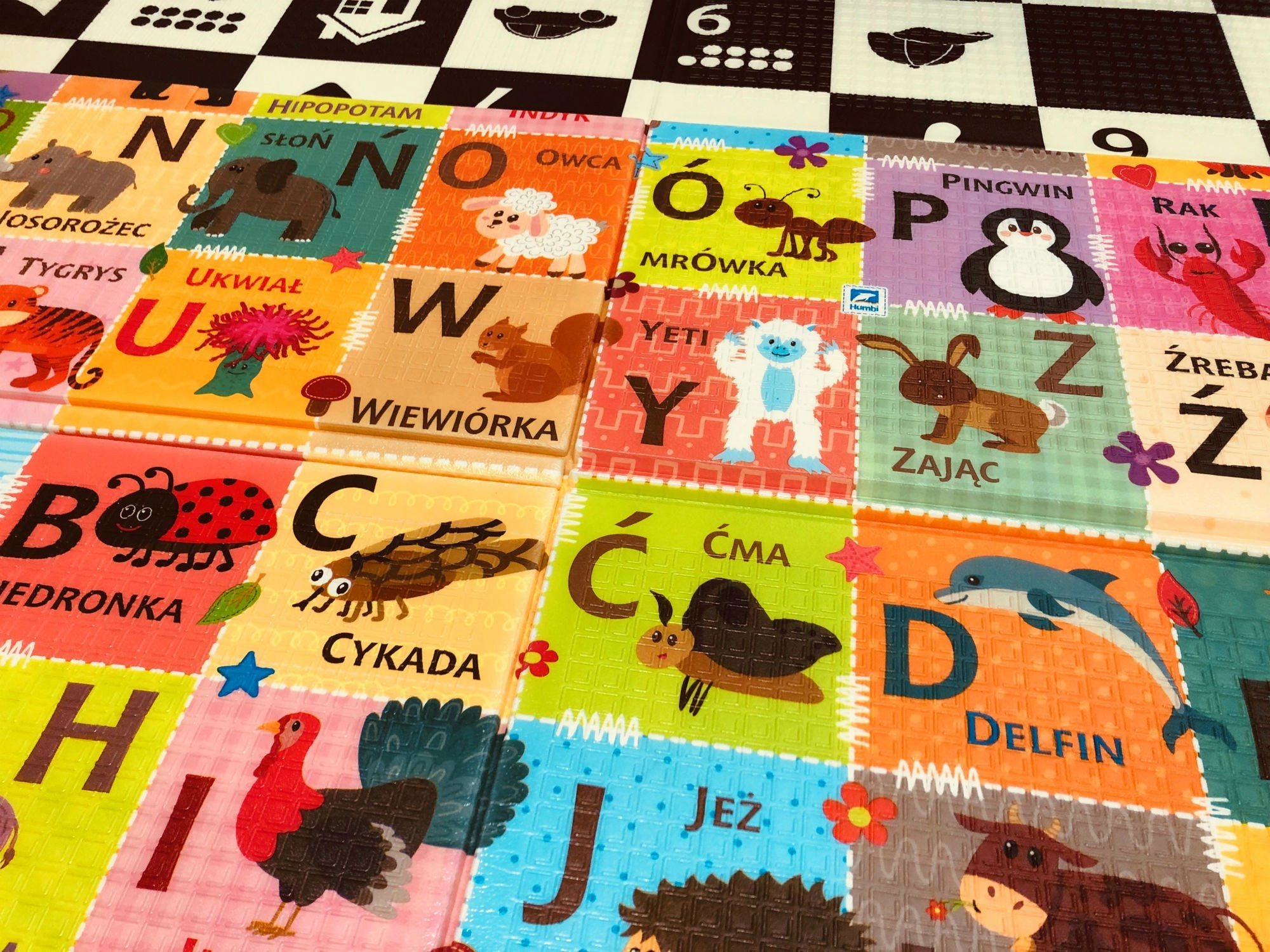 Diese große faltbare HUMBI 3-in-1-Matte bietet zwei Lernseiten: kontrastreiche Schachbrettmuster mit Zahlen und Punkten für ein leichteres Mengenverständnis sowie eine bunte Seite mit Alphabet und Tieren für spielerisches Buchstabenlernen. Bereits ab den ersten Lebenstagen fördert sie visuelle Wahrnehmung, Motorik und einen sicheren Spielbereich.