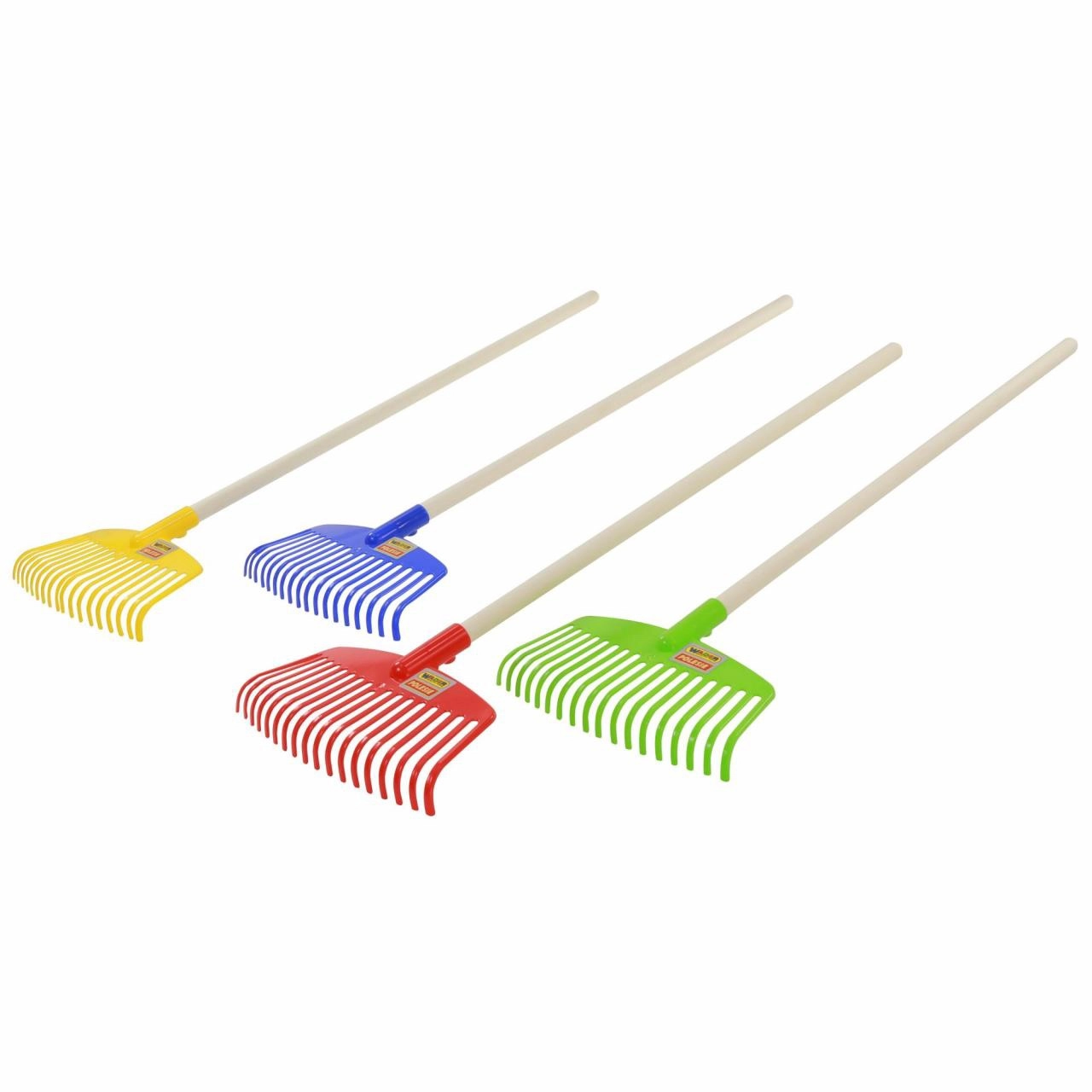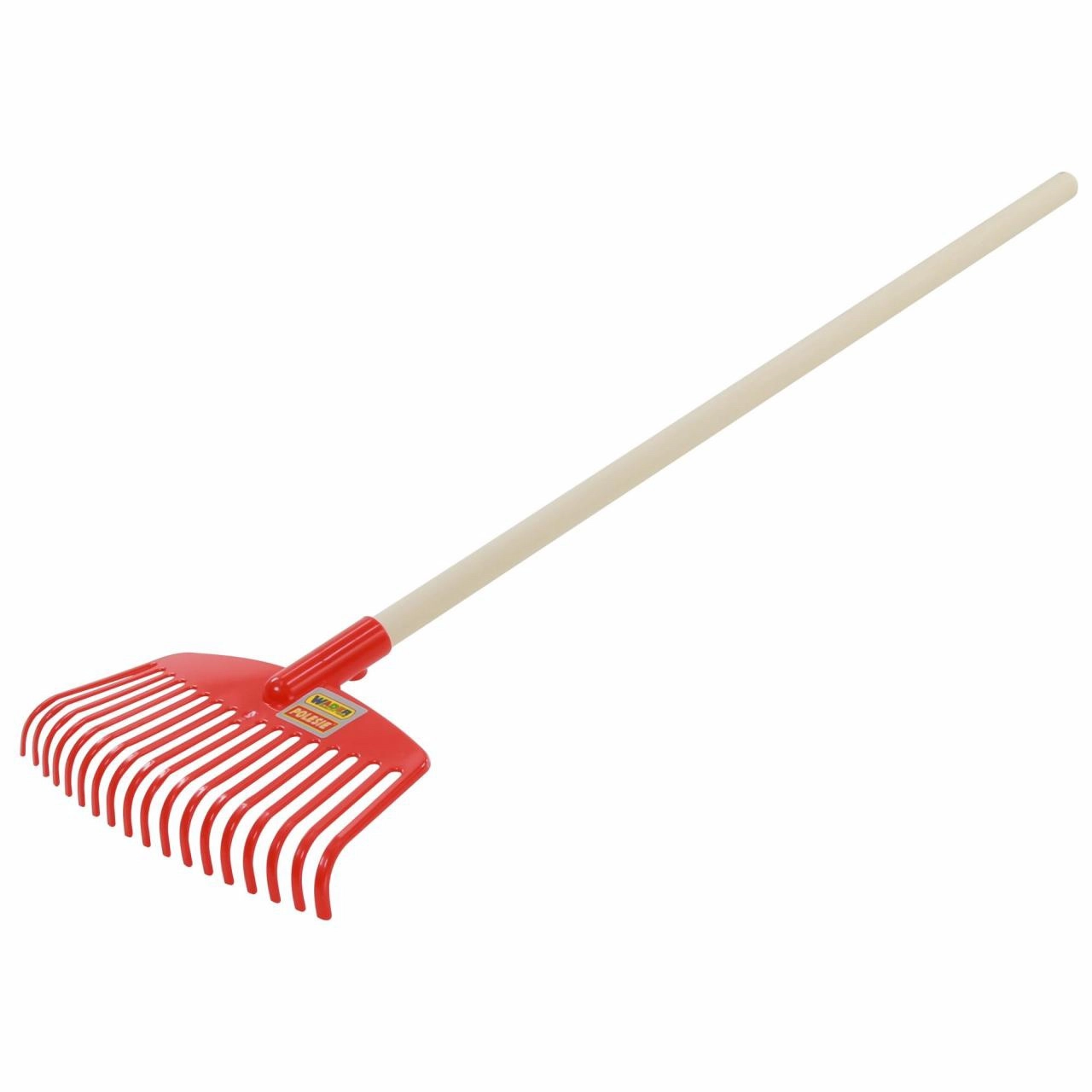 Die Kinderharke von Wader Quality Toys begeistert kleine Gärtner und Baumeister im Sandkasten. Dank der Kombination aus massivem Kunststoff und Holzgriff ist sie stabil, widerstandsfähig und leicht zu halten. Die längere Bauweise erleichtert das Rechen von Sand und leichten Gartenabfällen.