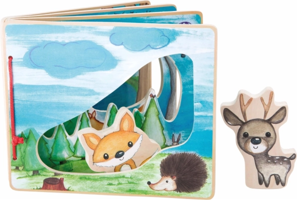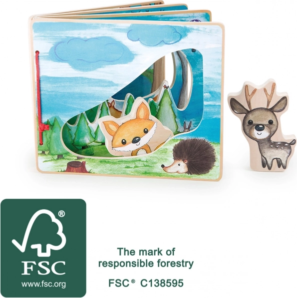 Betreten Sie den tiefen Wald mit dem interaktiven Holzbuch, das die Fantasie der Kinder anregt. Dank der Figuren von Fuchs und Hirsch, die helfen, die Flora und Fauna zu entdecken, wird jedes Spiel zu einem einzigartigen Erlebnis.