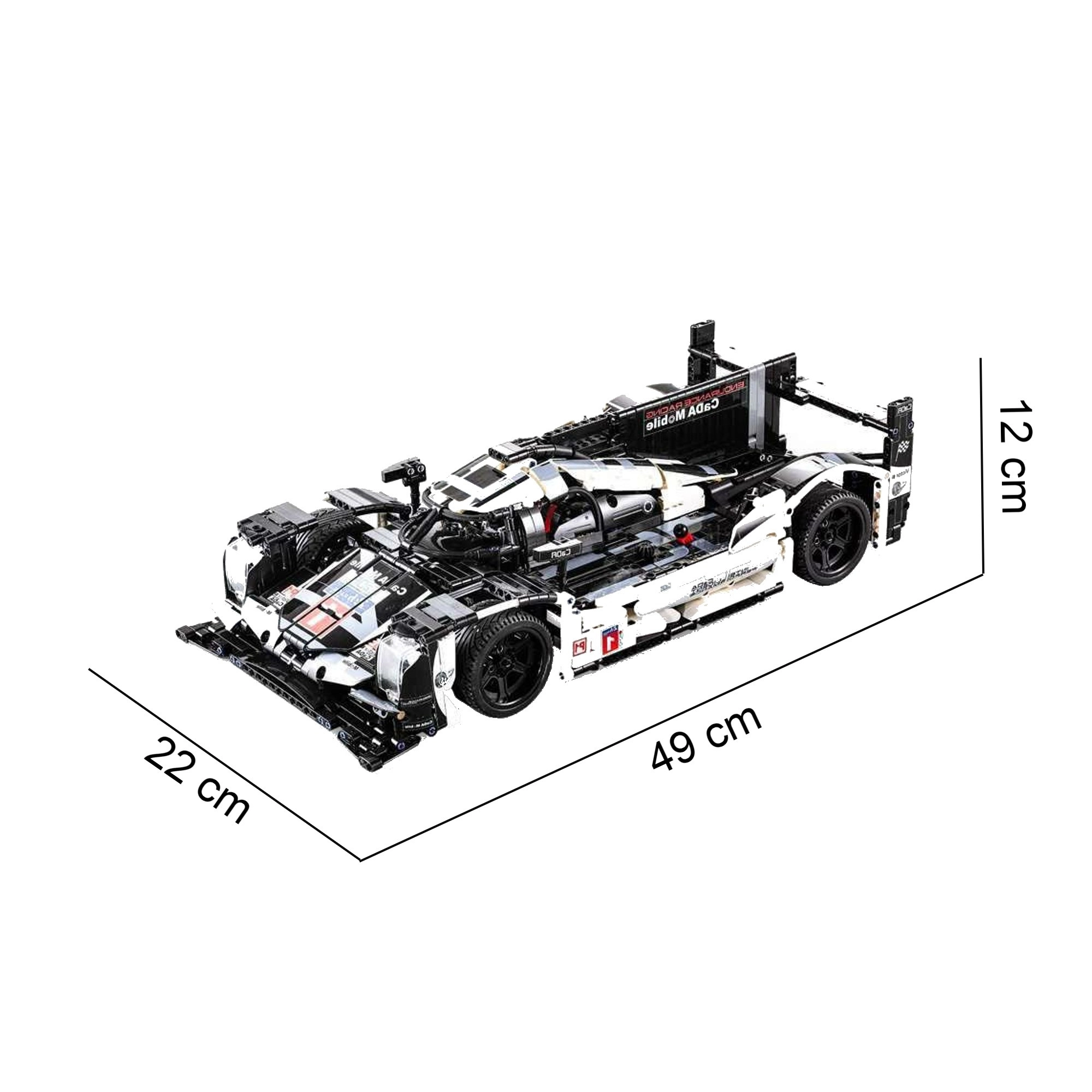 Das Rennwagenmodell besticht durch ausgearbeitete Details, robuste Bauteile und bewegliche Elemente. Nach dem Aufbau misst es ca. 48,5 × 21,5 × 11,5 cm und kann um Fernsteuerungs-Komponenten (Motoren, Akku, LEDs usw. – separat erhältlich) erweitert werden. Dank der Kompatibilität mit anderen Marken fügt es sich nahtlos in Ihre Sammlung ein.