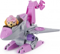 Die Skye-Figur ist detailreich gestaltet, trägt eine rosa Kappe und ein Jetpack und verfügt über bewegliche Elemente für einfaches Posieren und Spielen. Das Fahrzeug ist auf die Figur abgestimmt, sodass Kinder sofort zu Dino-Rettungsmissionen aufbrechen können.