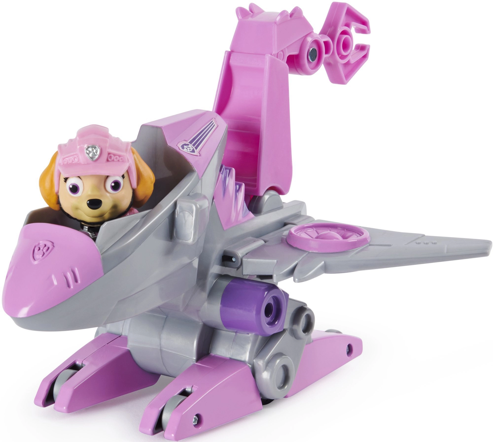 Das PAW-PATROL-Set bringt Kindern die beliebte Heldin Skye, eine Pilotin, die für jede Rettungsaktion bereit ist. Mit dem eleganten silber-rosafarbenen Fahrzeug mit Flügeln und funktionalem Greifer werden Einsätze zu spannenden Geschichten voller Fantasie. Außerdem ist ein kleiner Dinosaurier – Überraschung dabei, der dem Spiel eine neue Dimension verleiht.