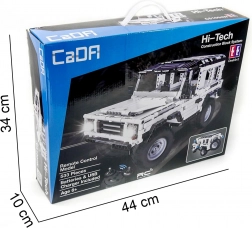 Der CaDA Hi‑Tech Bausatz ist eine großartige Wahl für kleine und große Konstrukteure, die Herausforderungen lieben. Der weiße Offroader im Jeep‑Stil bietet eine robuste Konstruktion, öffnende Elemente und eine präzise Steuerung über 2,4 GHz. Nach dem Aufbau fährt das Modell bis zu 6,3 km/h schnell und dank der zuverlässigen Funkverbindung genießen Sie sanftes Fahren vorwärts, rückwärts und beim Lenken.