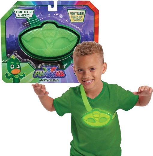 Werde zum Helden der Nacht wie Gekko aus der Animationsserie PJ Masks. Das grüne Amulett mit Gurt lässt sich leicht an der Brust befestigen und startet mit einem Knopfdruck Lichteffekte und eine Soundmelodie. Perfekt als Ergänzung zum Kostüm oder für eigenständiges Rollenspiel.