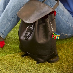 Der Miniwürfel mit Metallring lässt sich leicht an Schlüssel, Rucksack oder Handtasche befestigen und ist stets griffbereit.
