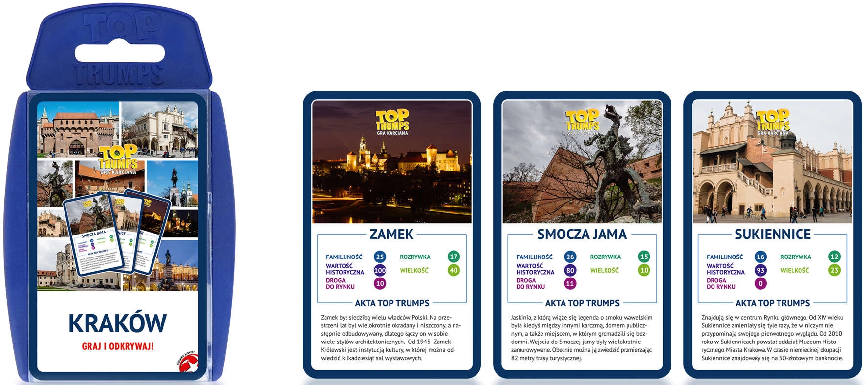Die Edition Krakau bietet thematische Karten mit Orten und Sehenswürdigkeiten, die dem Spiel Charakter verleihen. Dank des praktischen Kunststoffetuis können Sie das Spiel überallhin mitnehmen – auf Ausflüge, in den Urlaub oder zu Besuchen.