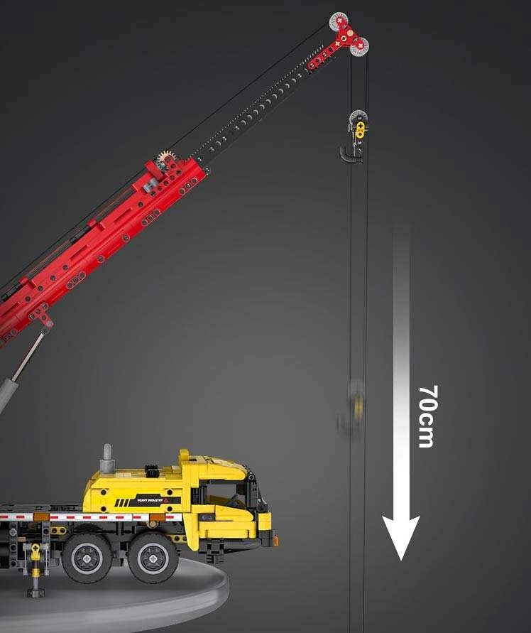 Dieses Technikmodell aus der Edition Make Your Bricks Move begeistert jeden Fan von Baumaschinen. Das gelbe Fahrgestell mit mehreren Achsen, die realistische Kabine und der lange rote Teleskopausleger mit Winde bieten ein authentisches Bau- und Spielerlebnis. Dank 360° drehbarem Oberwagen bewegen Sie die Last mühelos genau dorthin, wo sie gebraucht wird.