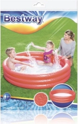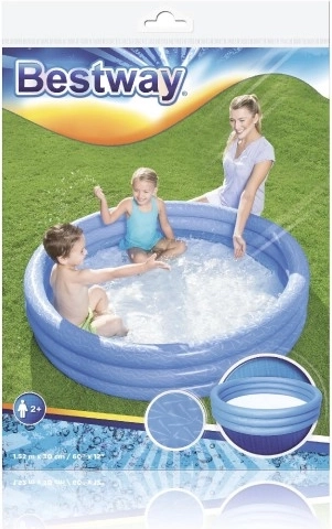 Das aufblasbare Becken der Marke Bestway ist aus widerstandsfähigem Vinylmaterial und bietet drei gleiche aufblasbare Ringe, die Stabilität und Komfort bieten. Mit einer Kapazität von 282 Litern (74 Gallonen) bietet es ausreichend Platz für Kinderaktivitäten im Garten.