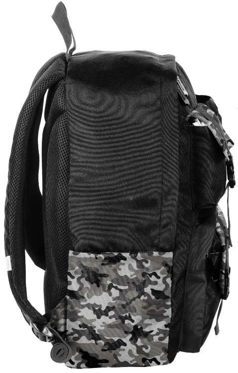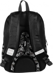 Suchen Sie einen zuverlässigen Schulrucksack für jeden Tag? BeUniq Moro vereint modernes Tarn-Design und Funktionalität: eine große Kammer für Bücher und A4-Hefte, drei vordere Reißverschlusstaschen für Kleinigkeiten und zwei seitliche Materialtaschen für Flaschen. Gepolsterter, anatomisch geformter Rücken mit atmungsaktivem Mesh und bequeme, verstellbare Schultergurte sorgen auch bei voller Beladung für Komfort.