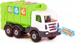 Das Fahrzeug hat keinen Antrieb und funktioniert rein mechanisch – Kinder können selbst das Anheben und Entleeren des Behälters, das Öffnen des oberen Deckels und das Kippen der gesamten Ladefläche steuern. Dank der robusten Ausführung eignet es sich auch für das Spielen in Gruppen im Kindergarten.