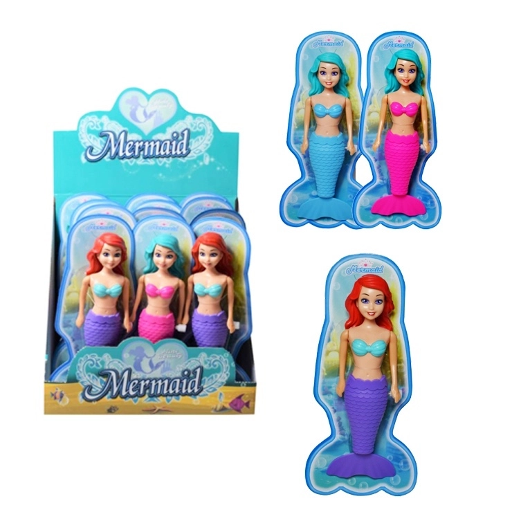 Die Puppe wird auf einer Blisterkarte geliefert und ist in mehreren attraktiven Flossenfarben erhältlich. Dank der kompakten Höhe von 18 cm passt sie leicht in den Rucksack und in Kinderhände – perfekt für unterwegs.