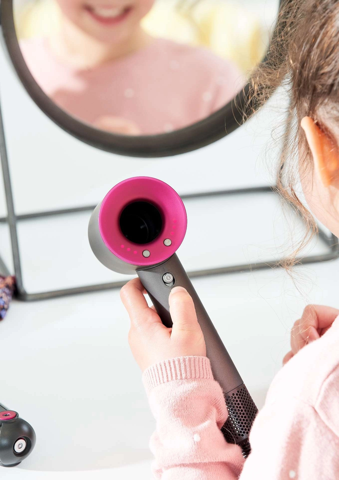 Das Kinder-Friseurset von CASDON mit dem ikonischen Dyson Supersonic bringt ein authentisches Salon-Erlebnis ins Kinderzimmer. Der Föhn bläst Luft, bietet Lichteffekte und dank magnetischer/austauschbarer Aufsätze lässt sich der Trocknungsstil variieren. Die beiliegende Rundbürste und der breite Kamm fördern die Fantasie beim Gestalten von Frisuren für Kinder, Puppen und Freunde.
