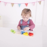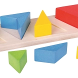 Die stabile Holzgrundplatte und angenehm große Teile sind ideal für kleine Hände. Wiederholtes Einsetzen fördert die Feinmotorik, Geduld und das logische Denken und stärkt zugleich erste mathematische Kompetenzen sowie das räumliche Vorstellungsvermögen.