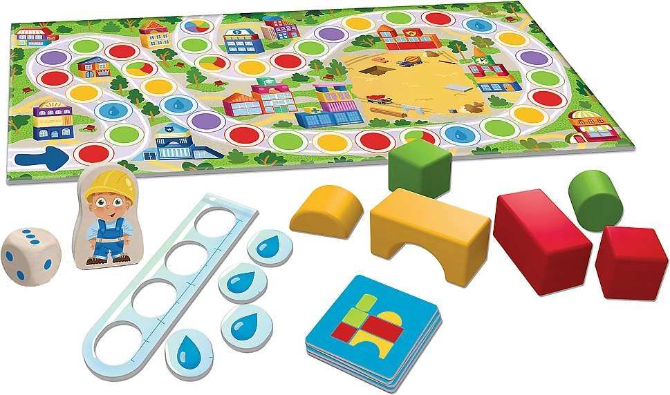 Die Aufgabe der Spieler ist es, die richtigen Elemente zu finden und Bauprojekte schneller zu vollenden, als der Regen einsetzt. Das Spiel bietet kurze und spannende Runden, die Zusammenarbeit ebenso wie gesundes Wettbewerbsgefühl unterstützen. Die farbenfrohe Verpackung macht es zu einem tollen Geschenk für kleine Baumeister.