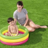 An heißen Sommertagen gibt es für die Kleinsten keine bessere Erfrischung als ein aufblasbares Planschbecken! Das Becken eignet sich ideal als Pfützen-/Planschbereich. Farbiger, dreikammeriger aufblasbarer Pool, der sich für den Garten eignet und Kindern garantiert große Freude bereitet. Der Boden aus weichgemachtem PVC verhindert Scheuern und wirkt rutschhemmend.