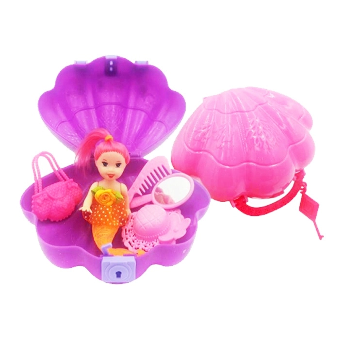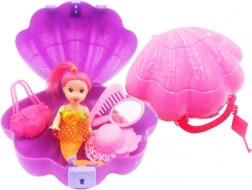 Niedliches Set mit Puppe – eine Meerjungfrau im Kunststoffkoffer in Muschelform, ideal für unterwegs. Enthält alles Nötige für kreatives Spielen: Meerjungfrau, Hut, Spiegel, Kamm, Handtasche und Schlüssel. Es stehen drei Farben zur Auswahl – rosa, lila oder blau. Nicht geeignet für Kinder unter 3 Jahren.