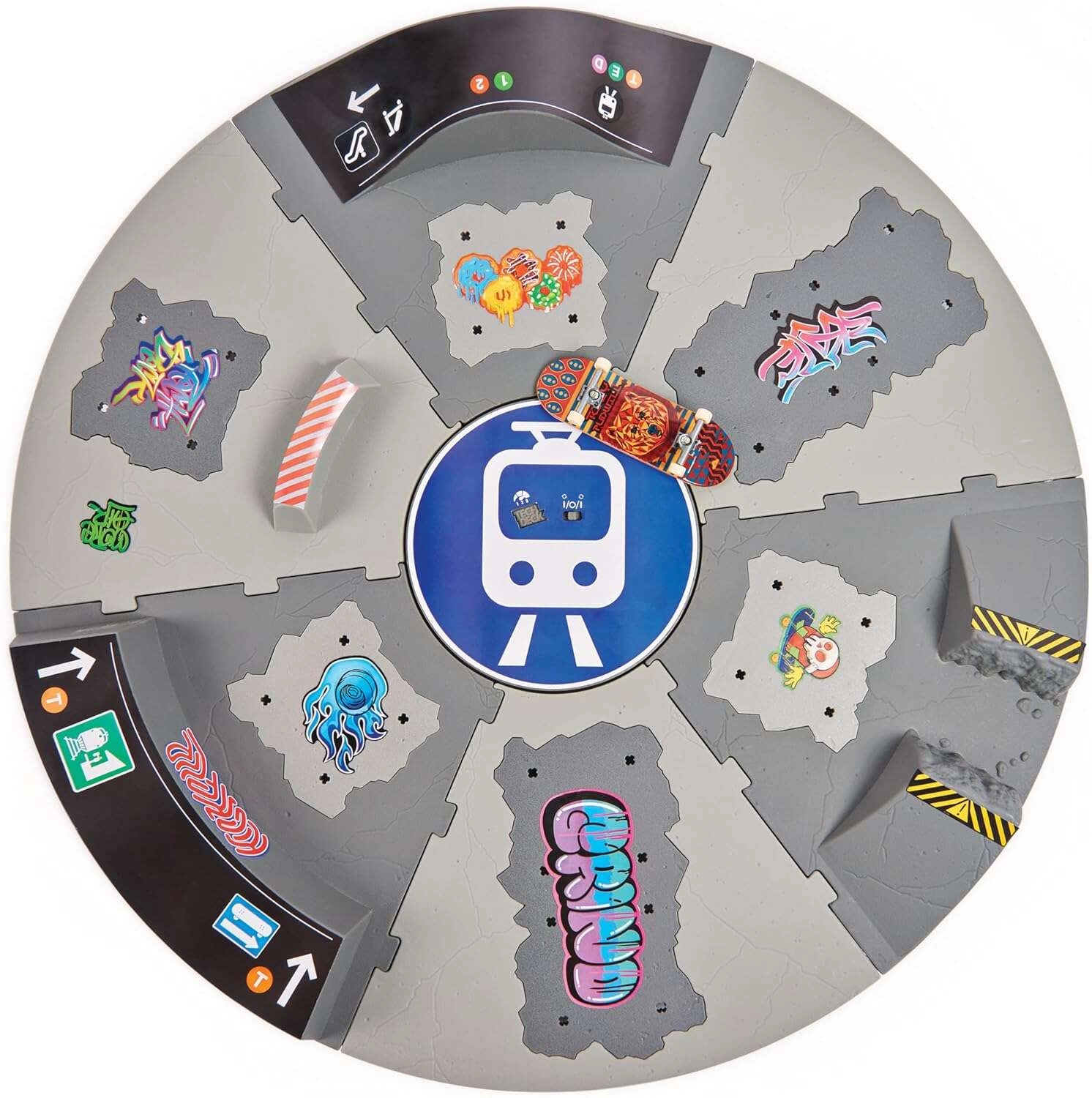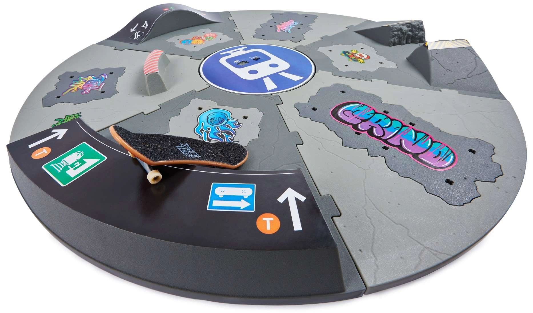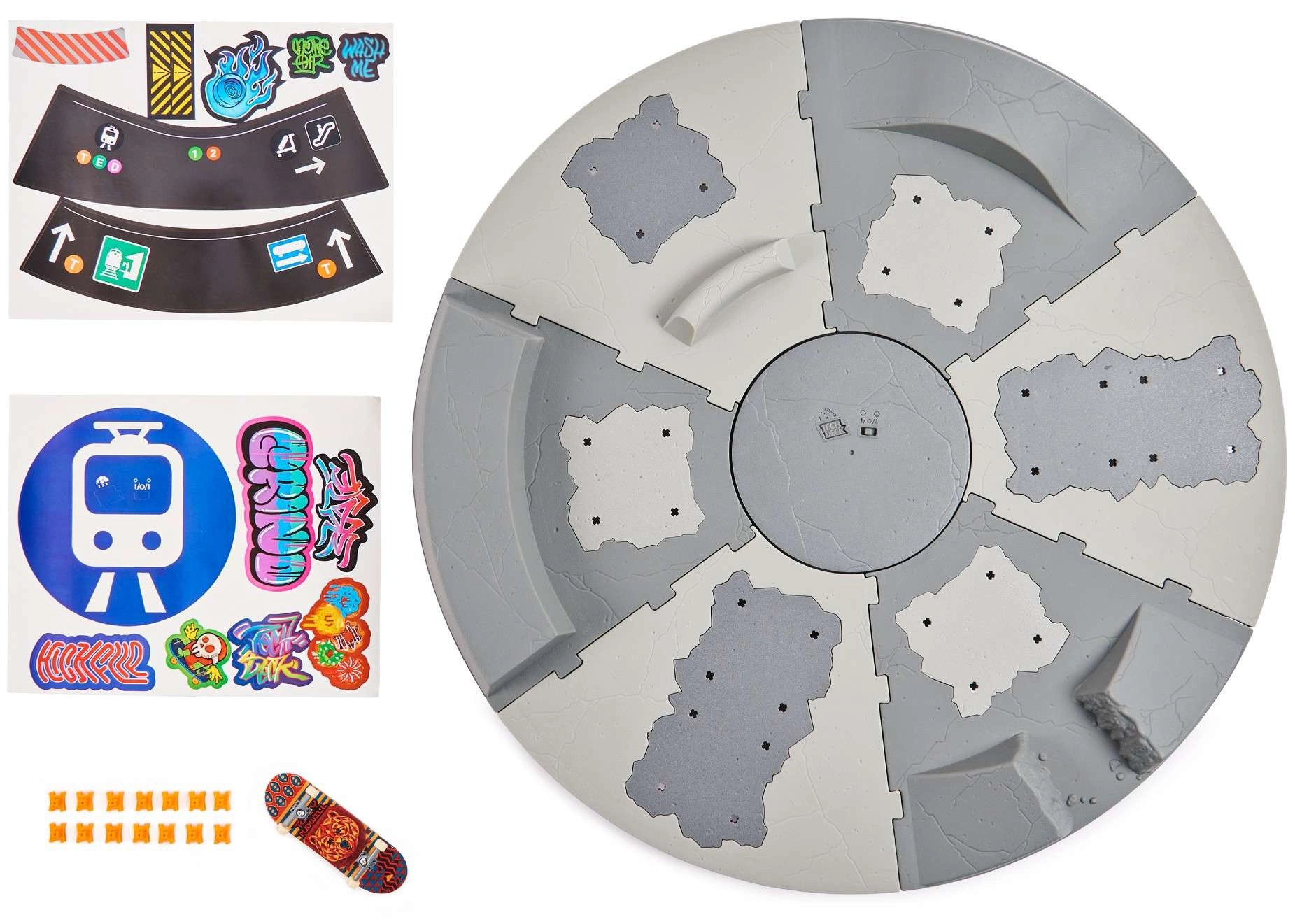 Baue dir einen kompakten Skatepark auf dem Tisch und zeige das Beste aus dem Fingerboarding. Der drehbare Sockel mit Segmenten, Rampen und Geländer ermöglicht flüssige 360°-Rotation, sodass du Fahrtrichtung und Trickschwierigkeit ändern kannst, ohne den Park umzubauen. Ideal zum Training von Ollies, Grinds und Manuals.