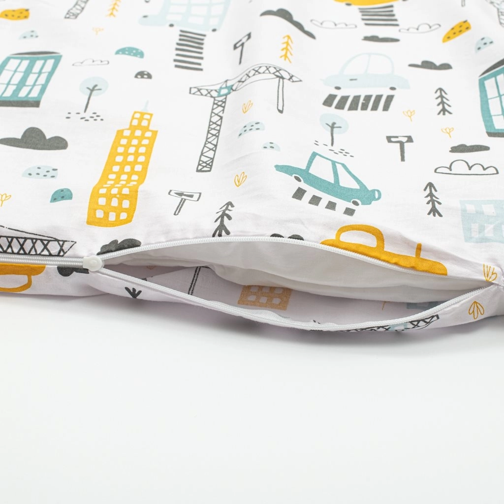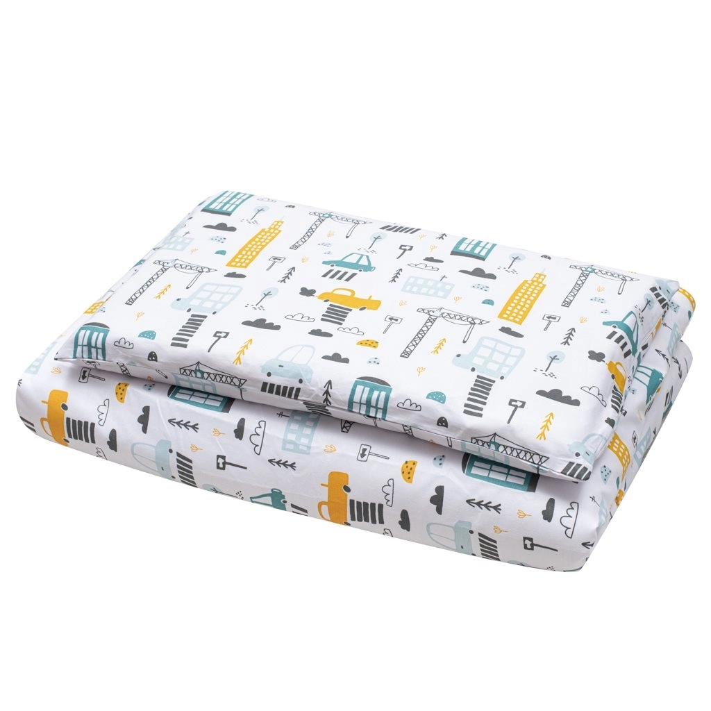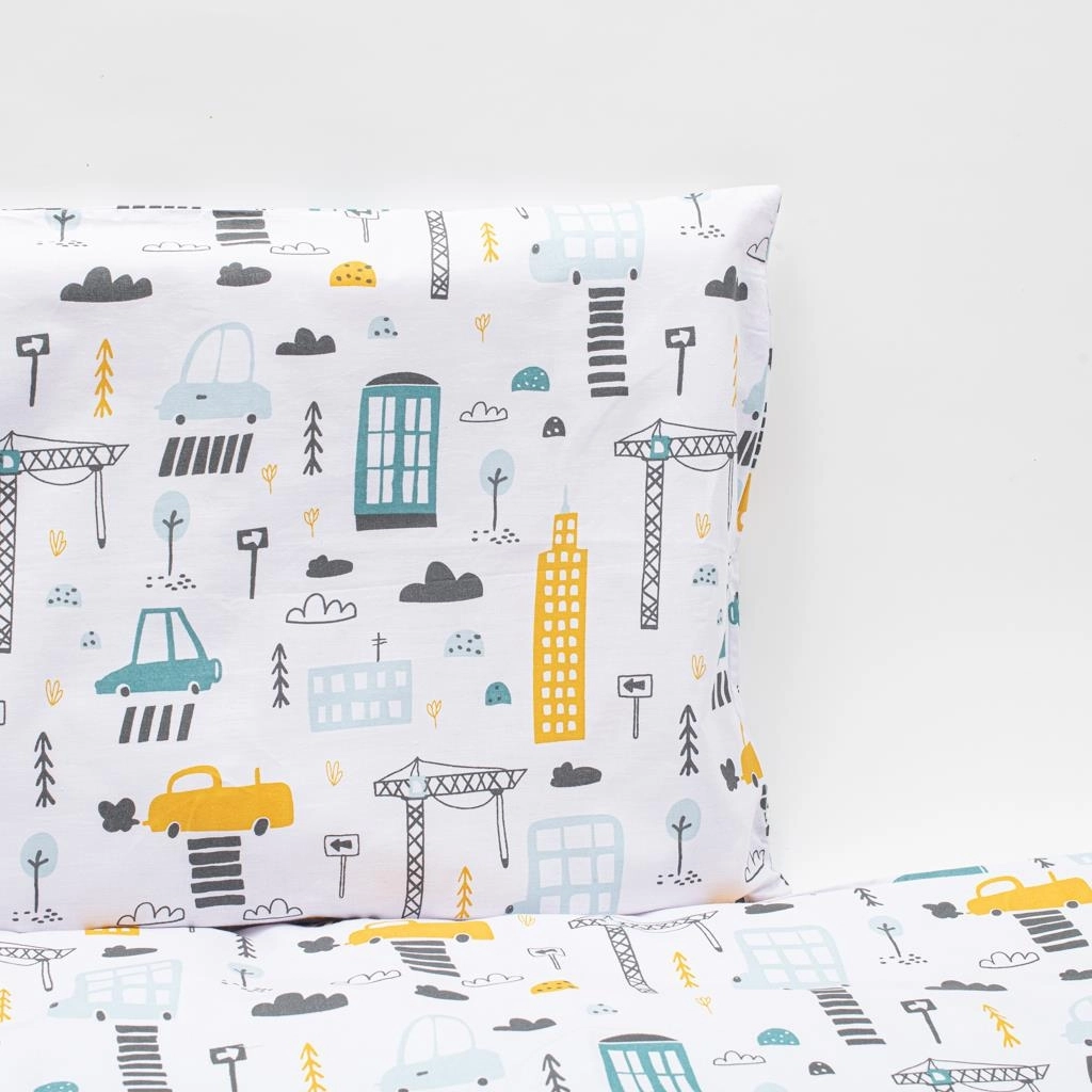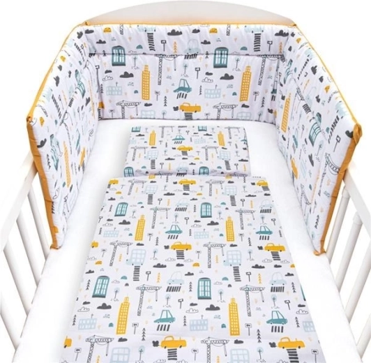 Das NEW BABY Bettwäscheset ist die ideale Wahl für Babys und Kleinkinder. Die hochwertige 100 % Baumwolle fühlt sich angenehm an, leitet Feuchtigkeit gut ab und reizt die Haut nicht. Das Stadt-Design in senfgelben Nuancen macht das Kinderbett gemütlich und unterstützt eine angenehme Einschlafatmosphäre.