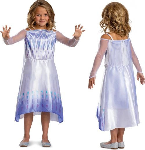 Verwandeln Sie das tägliche Spielen in ein eisiges Königreich mit dem von ELSA aus dem Film DISNEY FROZEN inspirierten Kostüm. Das Kleid in zarten Tönen von Weiß, Flieder und Silber hat transparente Ärmel, ein bedrucktes Oberteil mit „eisigen“ Motiven sowie einen fließenden Rock mit weichem Farbverlauf und kleinen Diamantmustern.