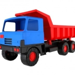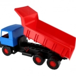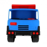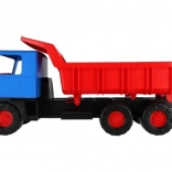 Robuster Plastik-LKW mit blauer Fahrerkabine und roter Kippmulde begeistert kleine Baumeister zu Hause und im Sandkasten. Dank der Länge von 75 cm, der robusten Räder und der funktionierenden Kippfunktion transportiert er Sand, Kieselsteine und Spielzeug mühelos. Die leichte und sichere Konstruktion fördert kreatives Spielen im Freien.