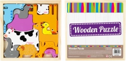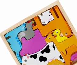 Dieses Holzpuzzle mit Tieren ist eine großartige edukative Ergänzung fürs Kinderzimmer. Kinder setzen einzelne Holzteile in die passenden Aussparungen und trainieren dabei räumliche Vorstellungskraft, Geduld und Hand-Auge-Koordination. Robuste, farbenfrohe Teile lassen sich auch von kleinen Kinderhänden leicht greifen.